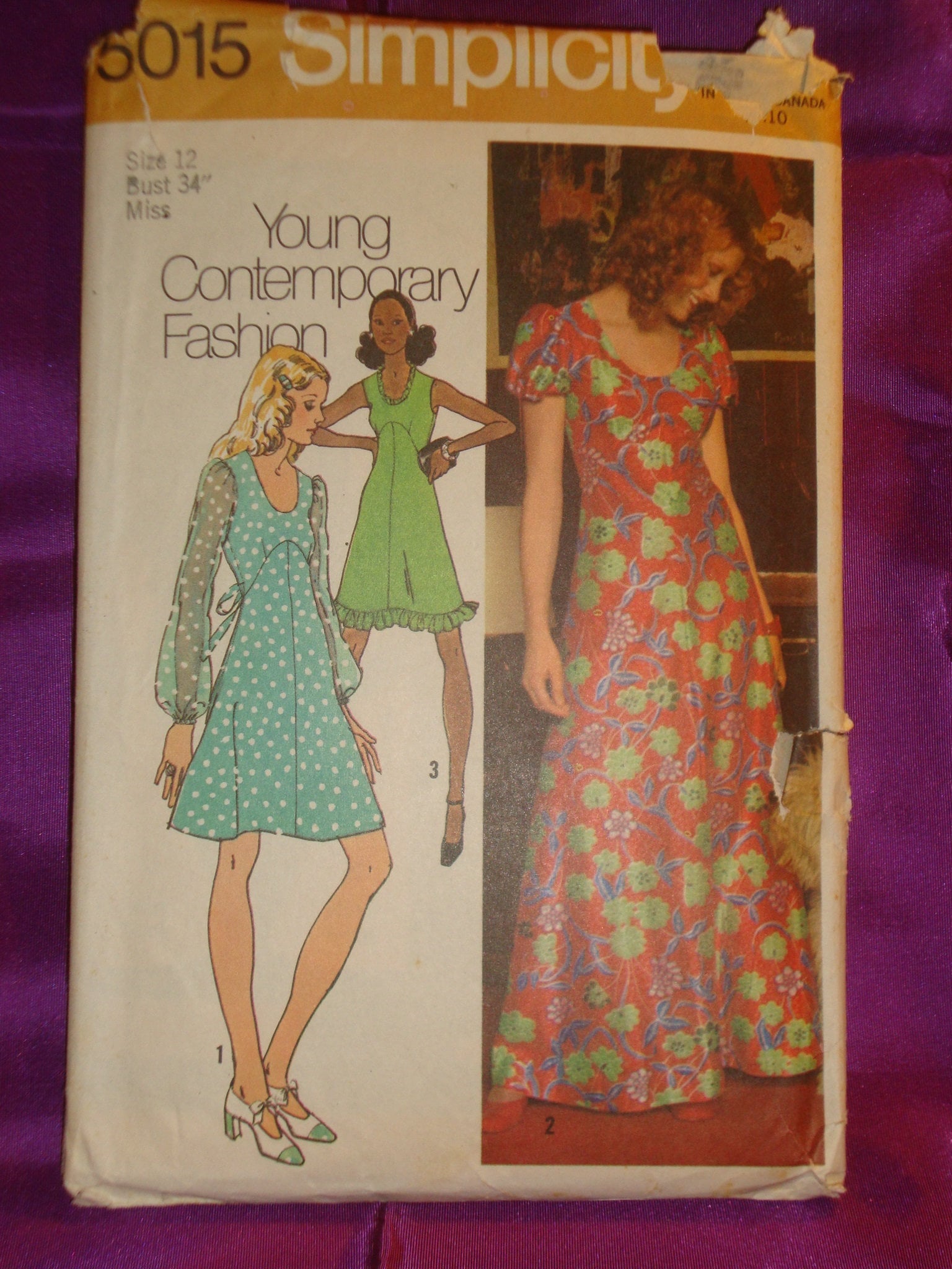 70 S Dress Pattern Empire Dress Pattern Etsy